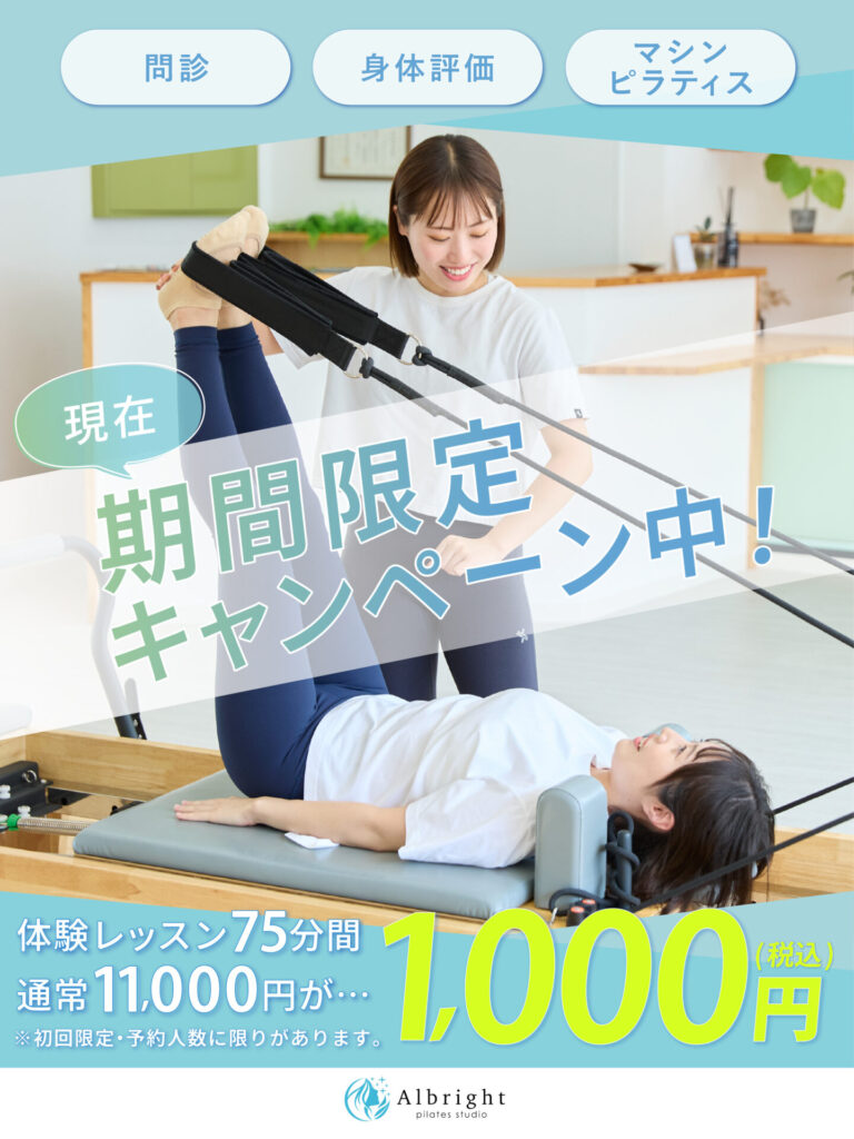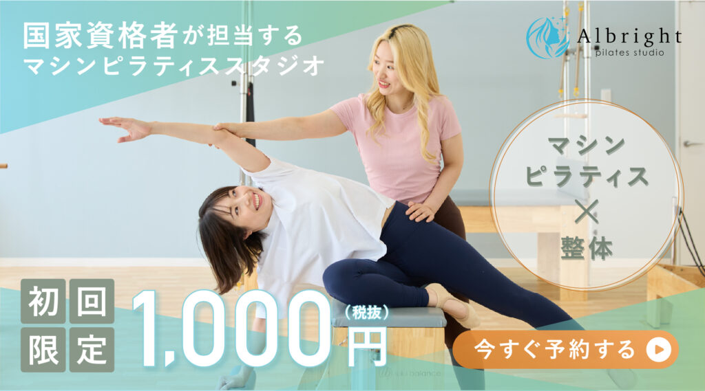 アルブライトは各店、リフォーマーやキャディラックと言った豊富なマシンを取り揃えております。そのため、症状を改善するための最適なエクササイズを選択しながら行えます。
